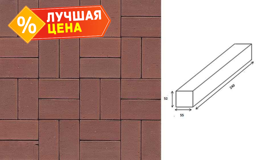 Клинкерная брусчатка Muhr №03 Naturrot, 240x55x52 мм